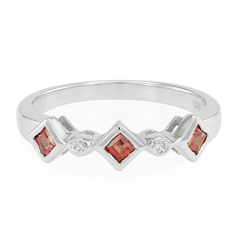 Immergetevi nel fascino di questo straordinario anello in argento sterling, impreziosito da 0,31 carati di rubini cambogiani a taglio quadrato. Il caldo bagliore serale dei rubini è perfettamente completato dallo scintillio di due zaffiri bianchi del Madagascar, che aggiungono un tocco di raffinatezza. L’elegante montatura in argento sterling 925 bilancia il design, rendendo questo anello una scelta versatile per l’eleganza di tutti i giorni o per una serata speciale. Abbinatelo al vostro abito da sera preferito per un tocco di glamour o al vostro abbigliamento quotidiano per un tocco di colore e di classe.