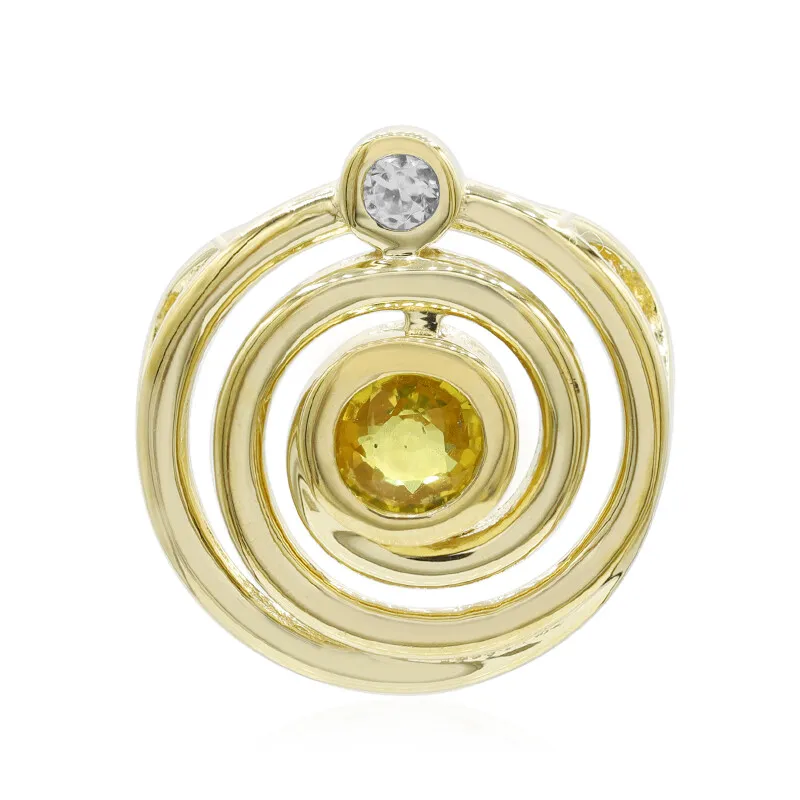 Vi presentiamo il nostro solare ciondolo con zaffiro giallo del Madagascar, un brillante ornamento della COLLEZIONE MONOSONO. Incastonato in cerchi concentrici d’argento 925 placcato oro, lo zaffiro di taglio rotondo da 0,31 carati brilla di calore. Accentuato da uno scintillante zircone cambogiano, questo pendente cattura l’essenza dell’eleganza con un tocco giocoso. Perfetto da indossare tutti i giorni o come tocco di colore per gli eventi serali, si abbina magnificamente a una camicetta bianca o a un tubino nero. Lasciate che questo tesoro di 14,5×13 mm aggiunga un tocco di raffinatezza alla vostra collezione.