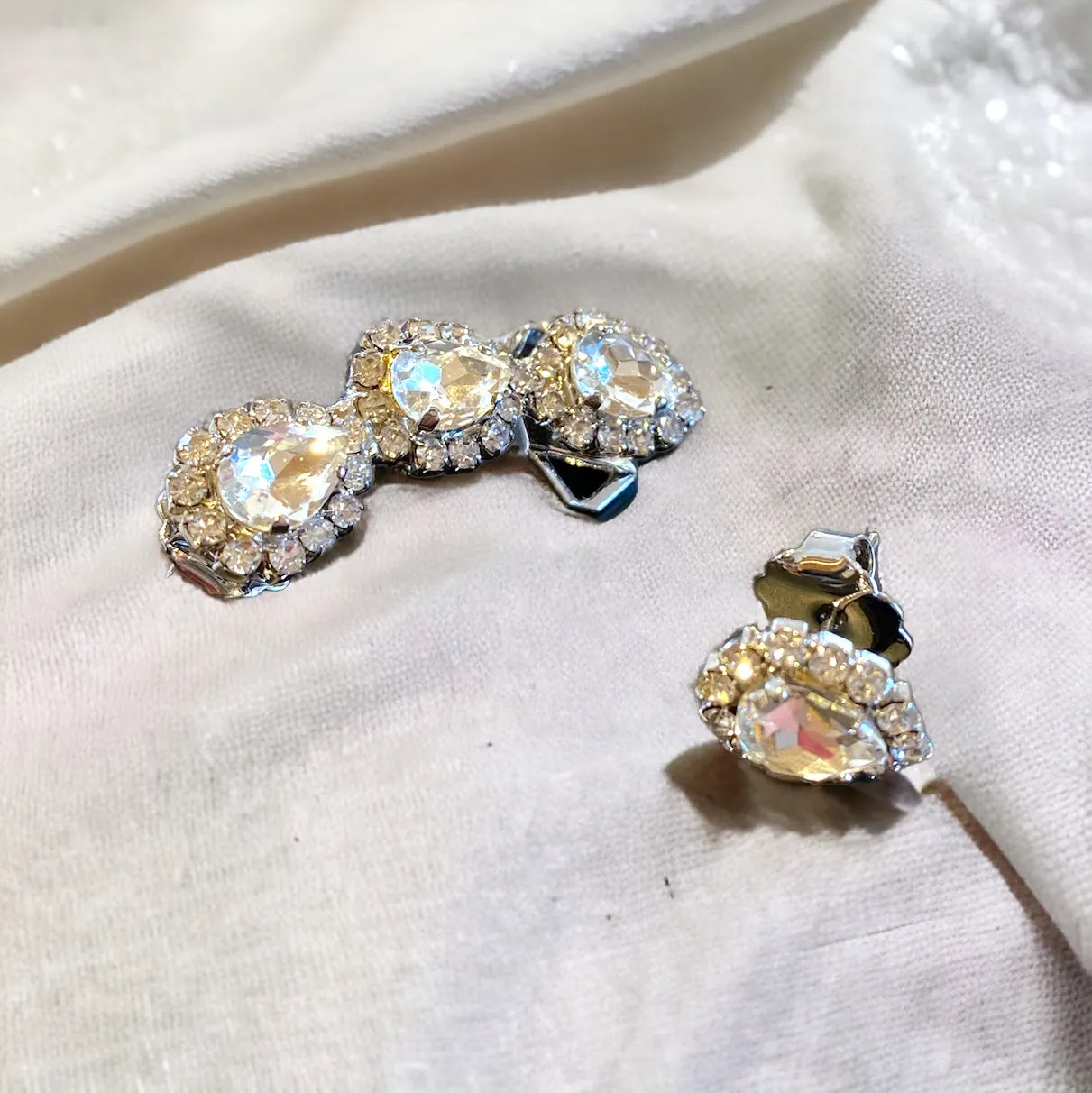 Orecchini con swarovsky crystal composto da un elemento da lobo da 1cm e un elemento modello earcuff,di dimensione 3.5cm