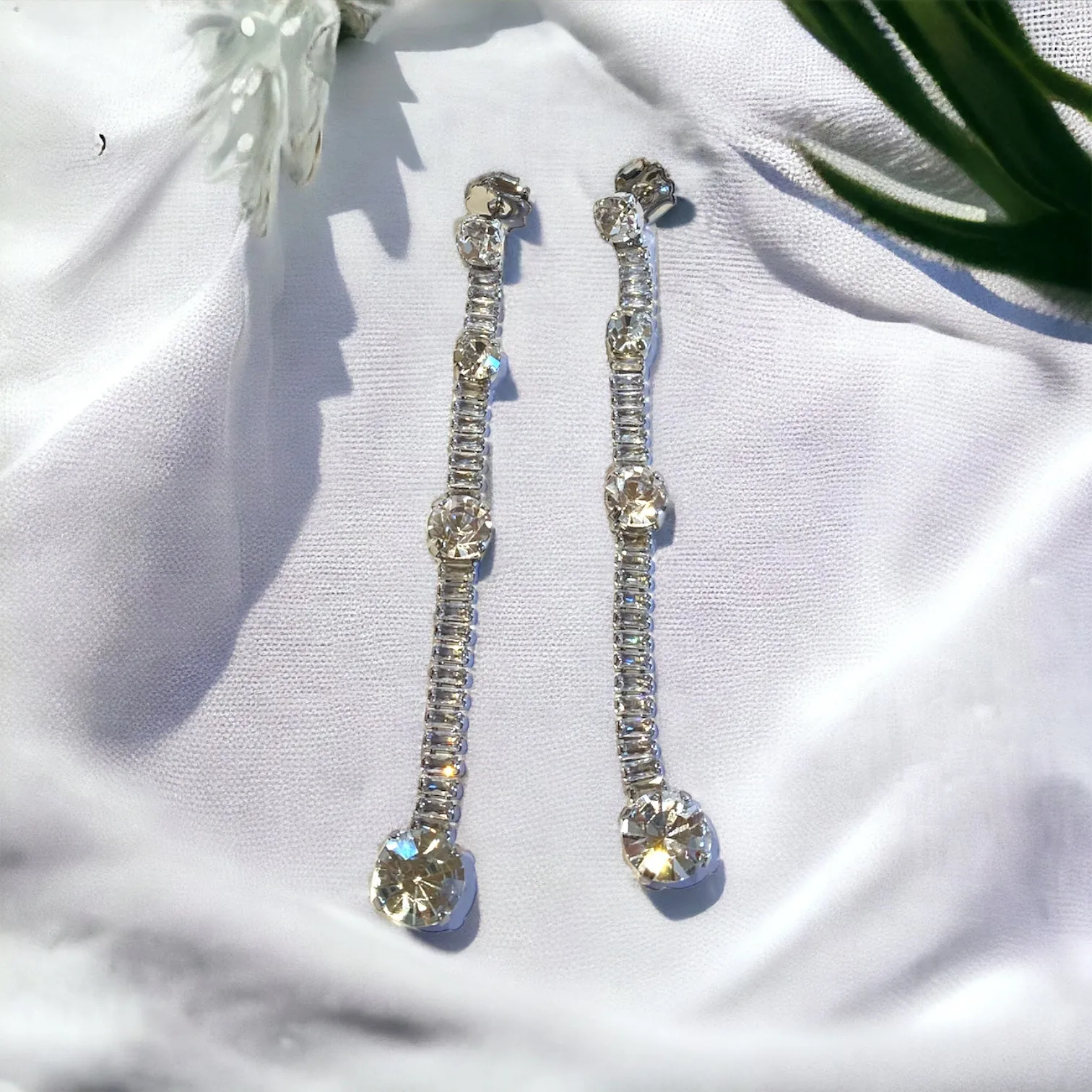 Orecchini lunghi con swarovsky crystal,taglio baguetta