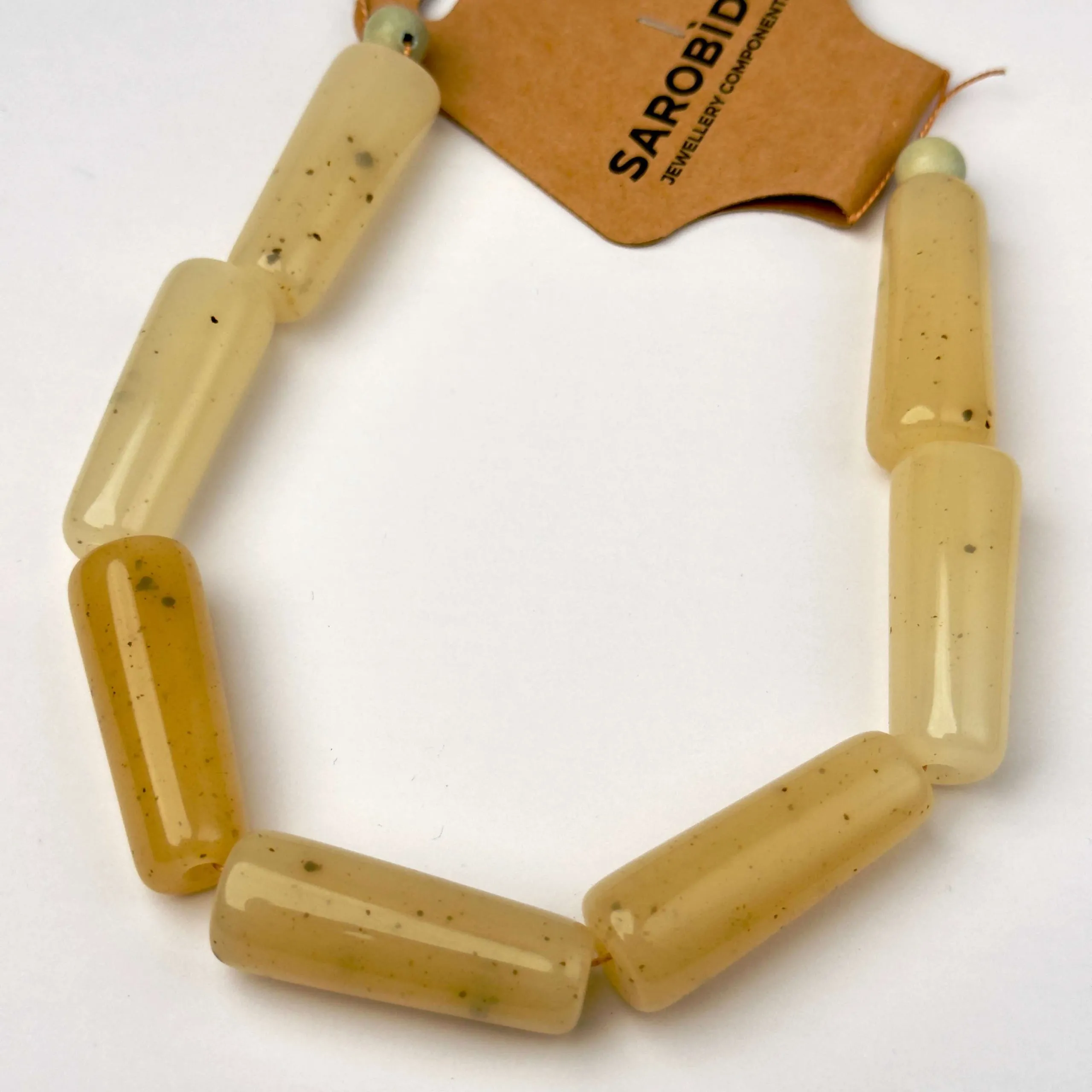 Perle in Resina a Filo – Cilindriche Beige Chiaro Traslucido – 38 x 18 mm