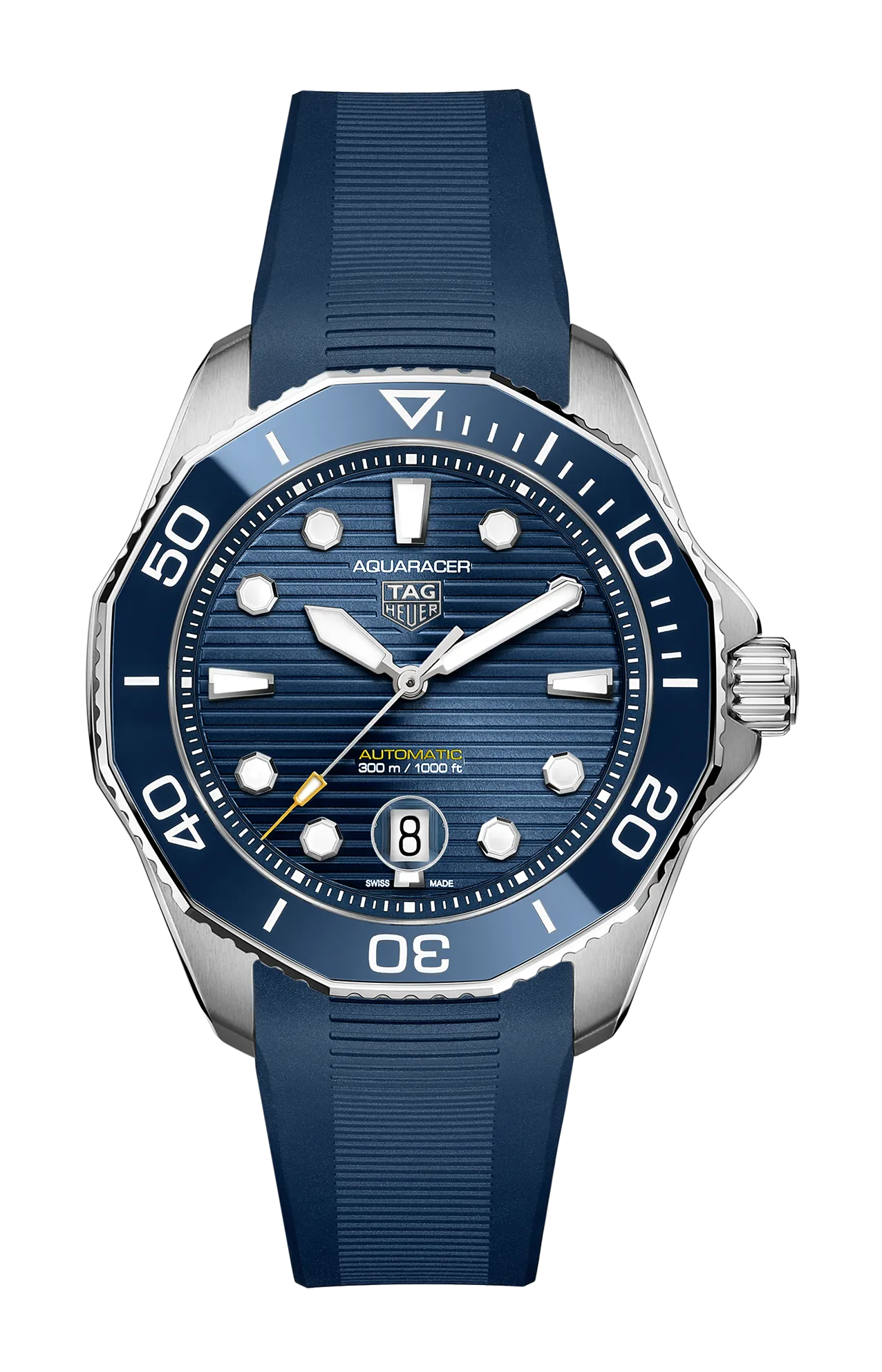 UN COMPAGNO PER LE IMMERSIONI IN ACQUE PROFONDE. IL NUOVO TAG HEUER AQUARACER CON CALIBRE 5 AUTOMATICO È PENSATO PER LE SFIDE. IL QUADRANTE BLU ACCESO EFFETTO SOLEIL SI ABBINA PERFETTAMENTE AL CINTURINO IN CAUCCIÙ, CON RAFFINATO SISTEMA DI REGOLAZIONE PER IL MASSIMO DEL COMFORT.